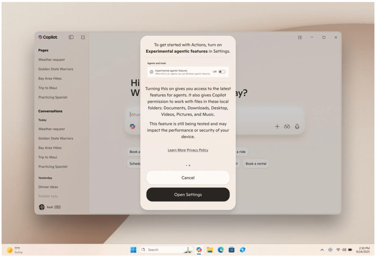 Navjot Virk, the company vice chairman of Windows Experiences, acknowledged that Copilot Actions might make errors. “We’re absolutely committed to learning from how people use it, and we want to continue to improve the experience, to make it more capable and streamlined over time, and that is why real-world testing of this experience is so critical,” she stated.