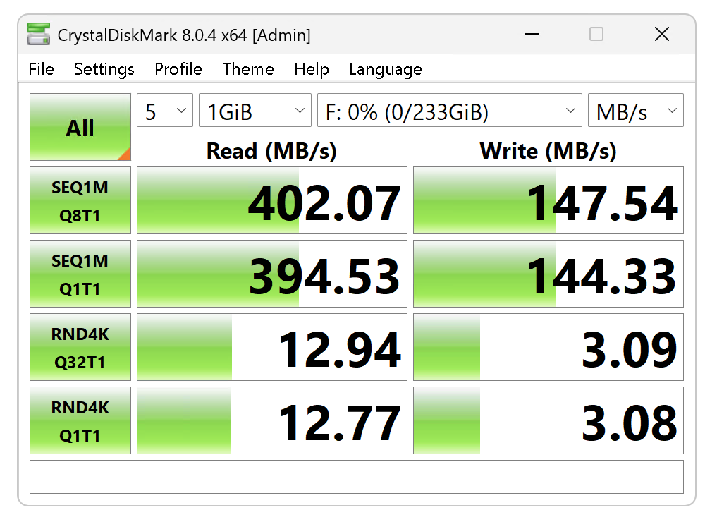 For reference, a good-performing 5Gbps SSD will learn and write at round 550Mbps. Even a quick 6Gbps SATA 3.5-inch exhausting drive manages 250MBps. Because of the low capability and sluggish writes, I needed to go off script for testing and with nothing much like evaluate it to, didn’t create any charts.