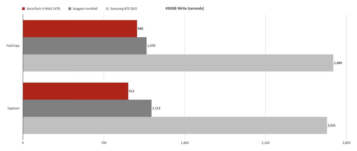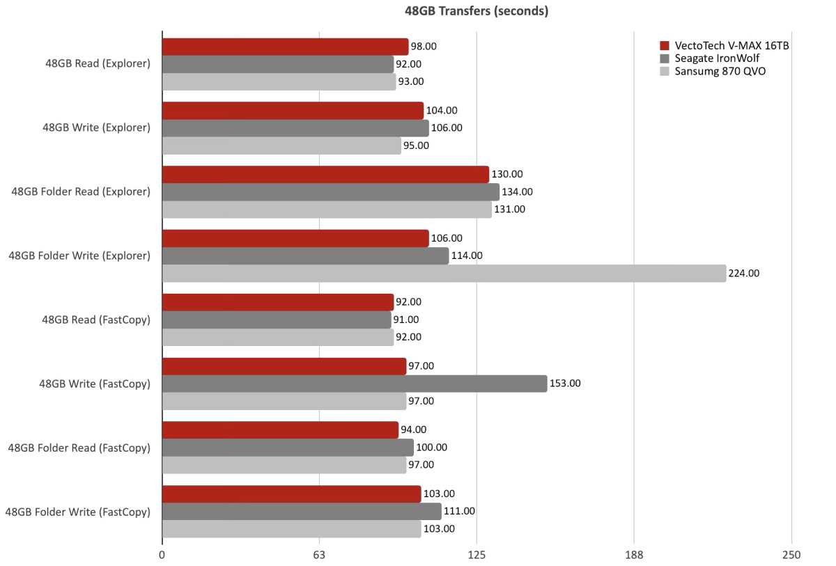 Our real-world 48GB transfers have been a blended bag for the V-MAX, with it quickest at some and never a lot in others. Overall, there wasn’t an entire lot of distinction to select from.