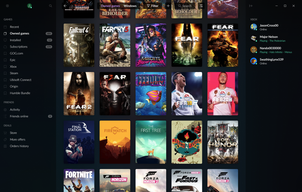 GOG Galaxy 2.0 does have a methods to go in some respects. I personally don’t search out pals to play with, nevertheless it’s not at all times clear what pals are on-line. I would see 4 pals enjoying Microsoft Xbox PC video games on the right-hand nav bar, equivalent to within the screenshot above. The left-hand nav bar, nonetheless, will report that zero pals are on-line. But the largest flaw, in my thoughts, is that GOG Galaxy 2.0 doesn’t report how massive a recreation is earlier than you obtain it—not everybody pays for limitless bandwidth or strikes deals to eliminate those caps.